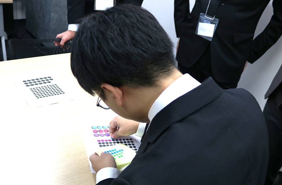 グループワークでは内定者同士でチームになり、適性検査体験を実施!🧩