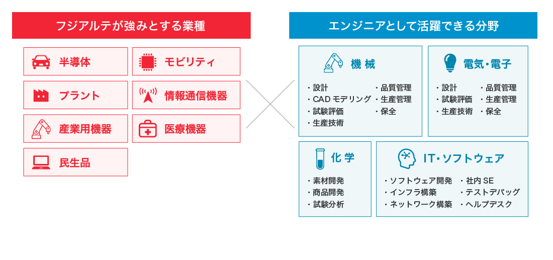 様々な業種の「ものづくり」の領域で、多彩なエンジニア業務があります。